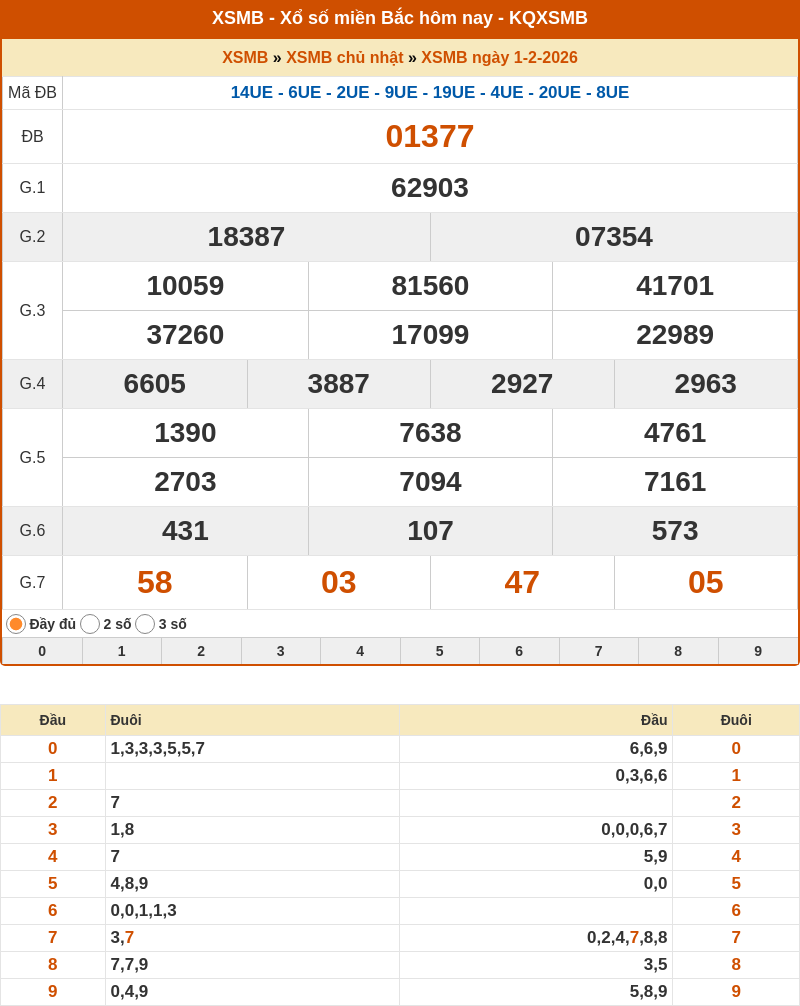 Theo dõi kết quả XSMB ngày cuối tuần 02-02-2026: