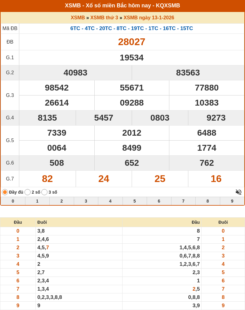1. ✔️Nhìn lại KQXSMB ngày 13/01/2026 hôm trước