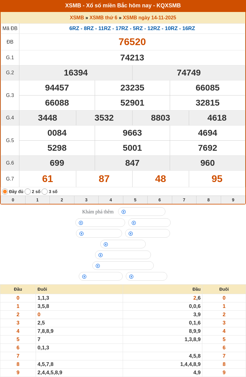 | ĐB | 76520 | 0 | 1, 1, 3 |