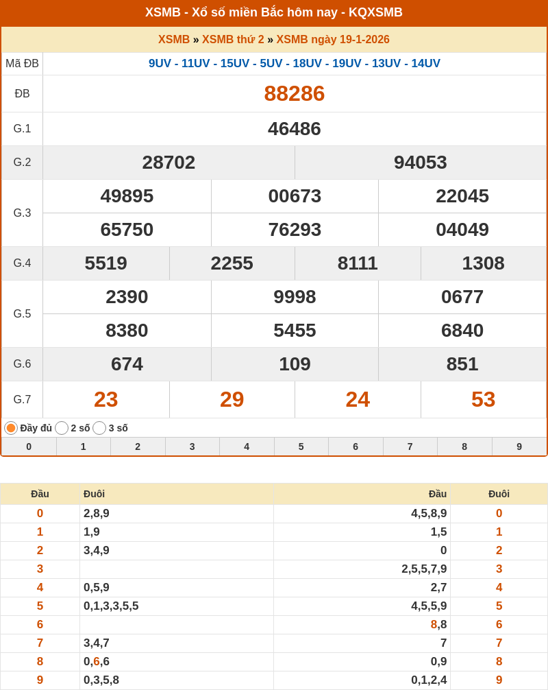 | ĐB | 88286 | 0 | 2, 8, 9 |