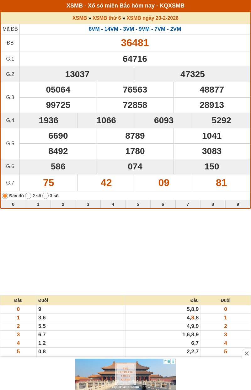 1. ✔️Xem lại KQXSMB ngày 20/02/2026 ngày trước đó
