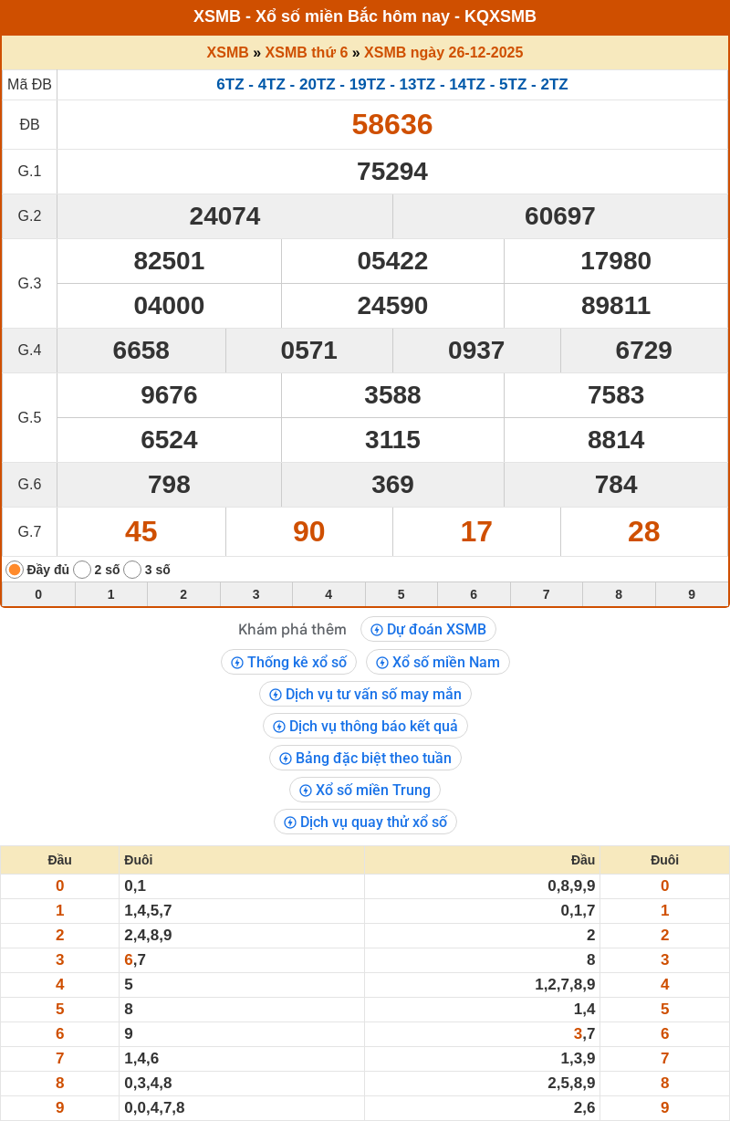1. ✔️Xem lại KQXSMB ngày 26/12/2025 ngày hôm qua