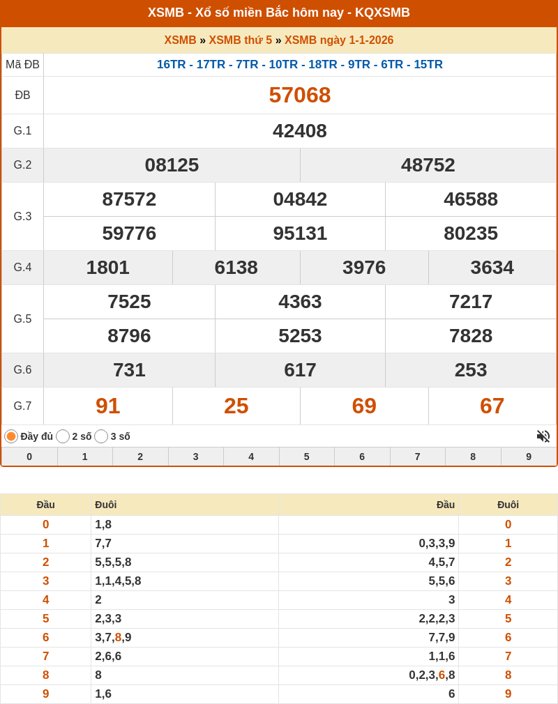 1. ✔️Nhìn lại kết quả xổ số miền Bắc ngày 01/01/2026 hôm qua