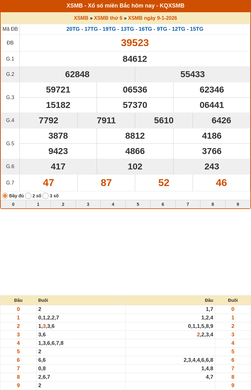1. ✔️Nhìn lại kết quả xổ số miền Bắc ngày 09/01/2026 hôm qua