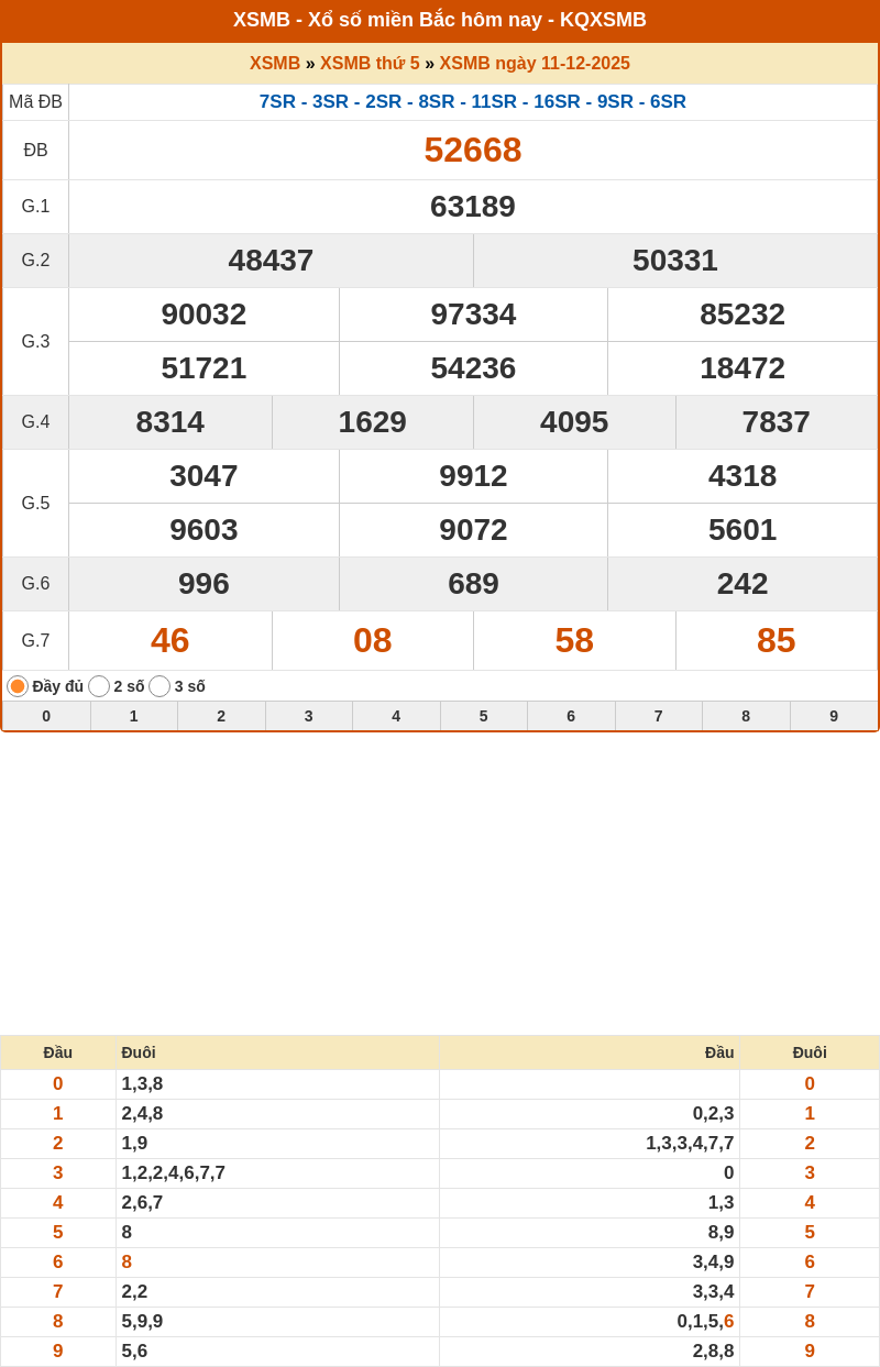 | ĐB | 52668 | 0 | 1, 3, 8 |
