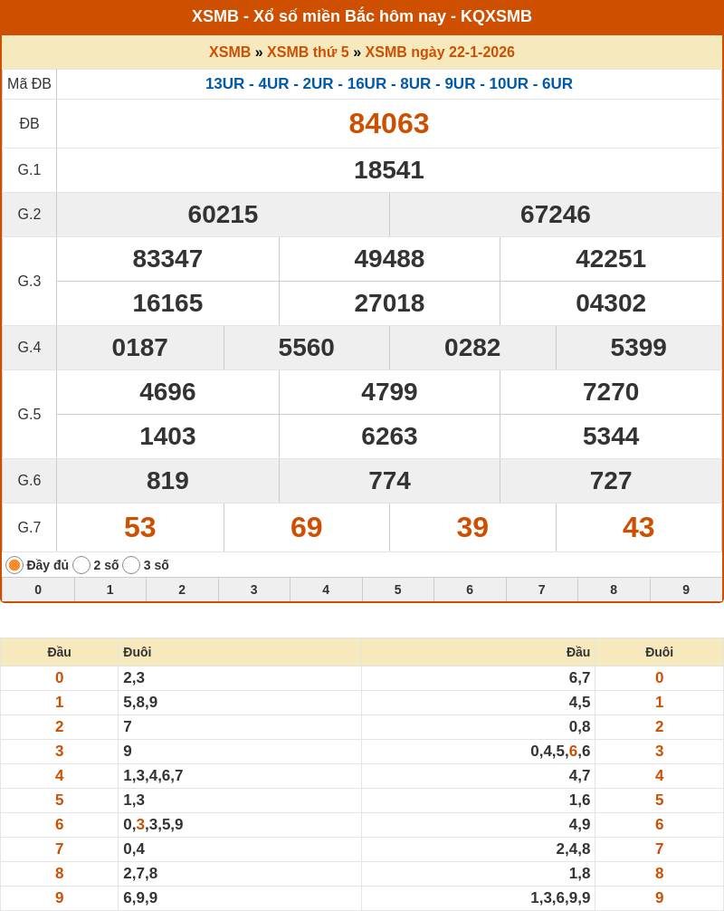 1. ✔️Xem lại kết quả xổ số miền Bắc ngày 22/01/2026 hôm qua