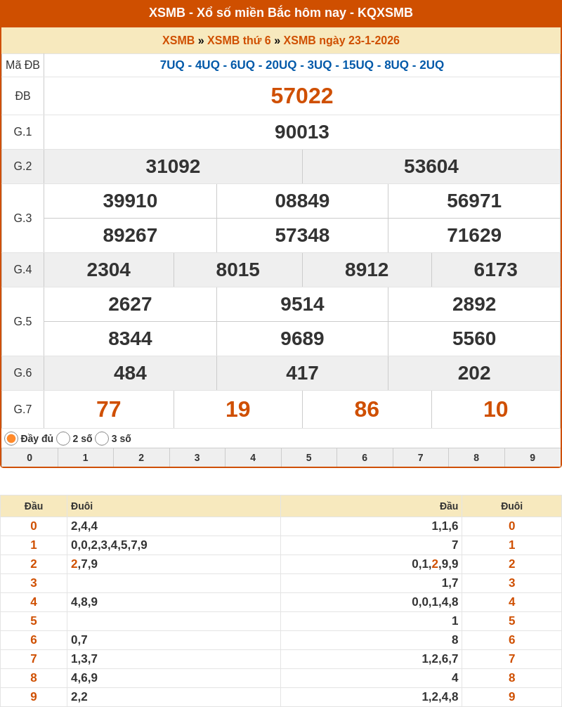 1. ✔️Nhìn lại KQXSMB ngày 23/01/2026 hôm qua
