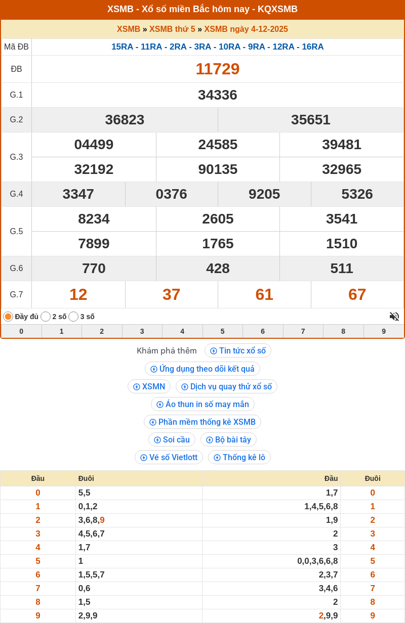 1. ✔️Nhìn lại kết quả XSMB ngày 04/12/2025 ngày hôm qua
