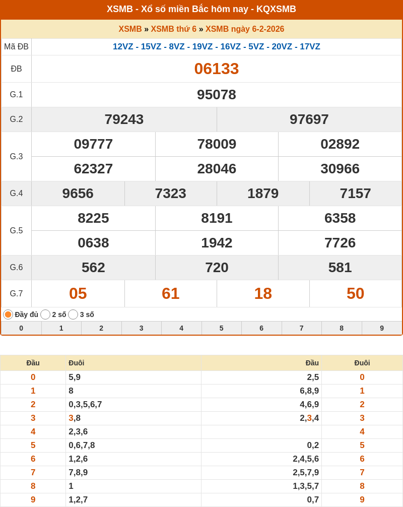 Phân tích kết quả XSMB phiên quay ngày 06/02/2026