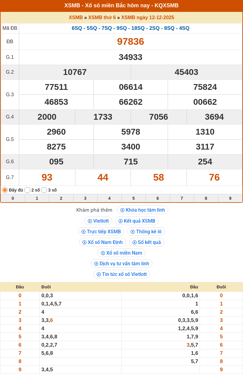 1. ✔️Xem lại KQXSMB ngày 12/12/2025 ngày trước đó