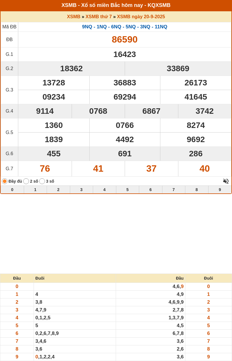 Hãy theo dõi bình luận bảng kết quả kỳ quay trước đó ngày 20/09/2025, để có thể chọn ra được cặp số lô XSMB đẹp may mắn hôm nay 21-09-2025.