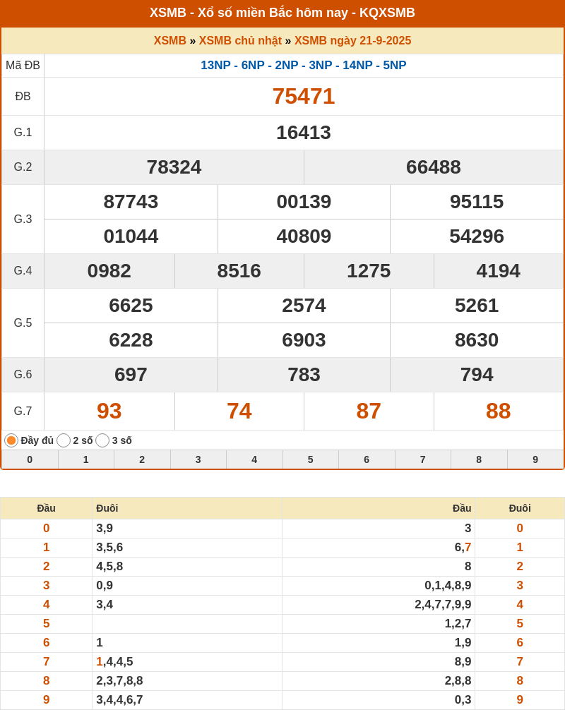 1. ✔️Xem lại KQXSMB ngày 21/09/2025 hôm qua