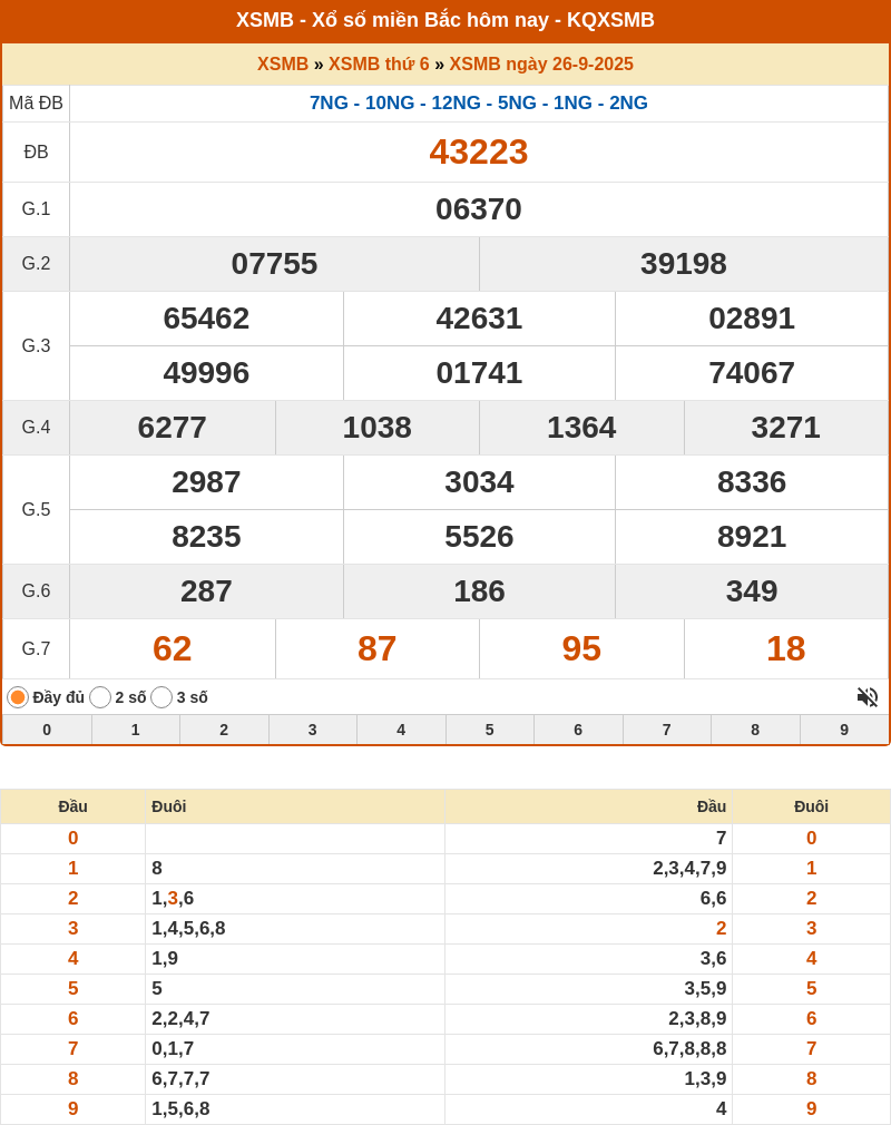Theo dõi kết quả XSMB Thứ 7 27-09-2025:
