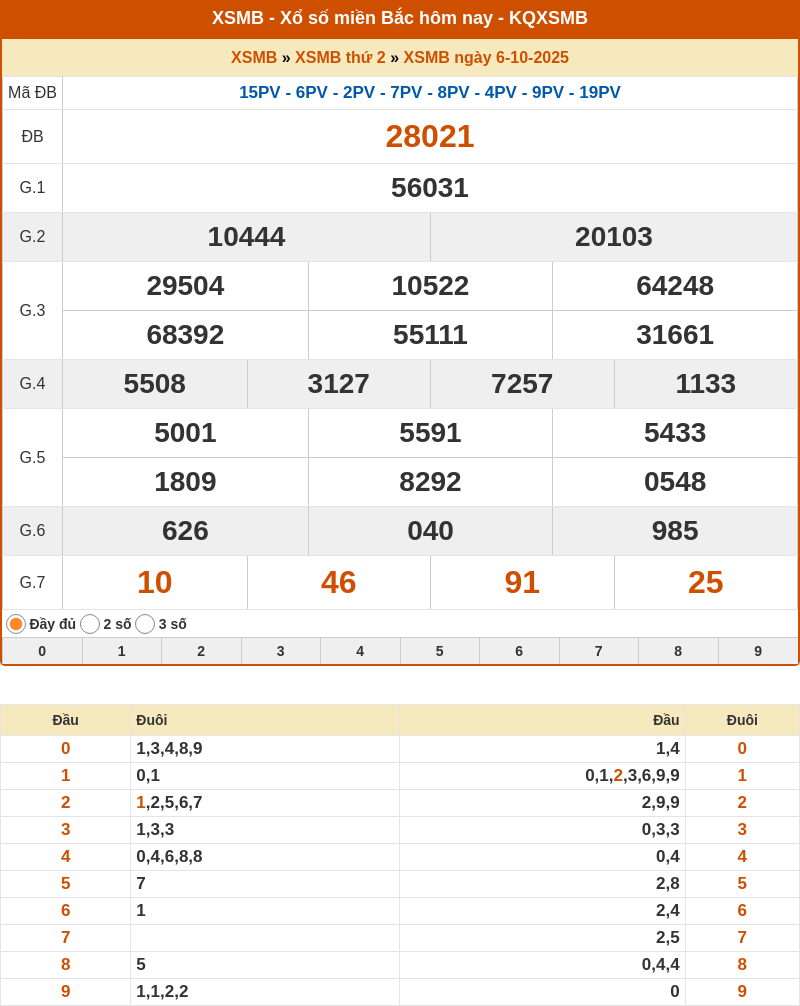 1. ✔️Xem lại kết quả xổ số miền Bắc ngày 06/10/2025 hôm qua