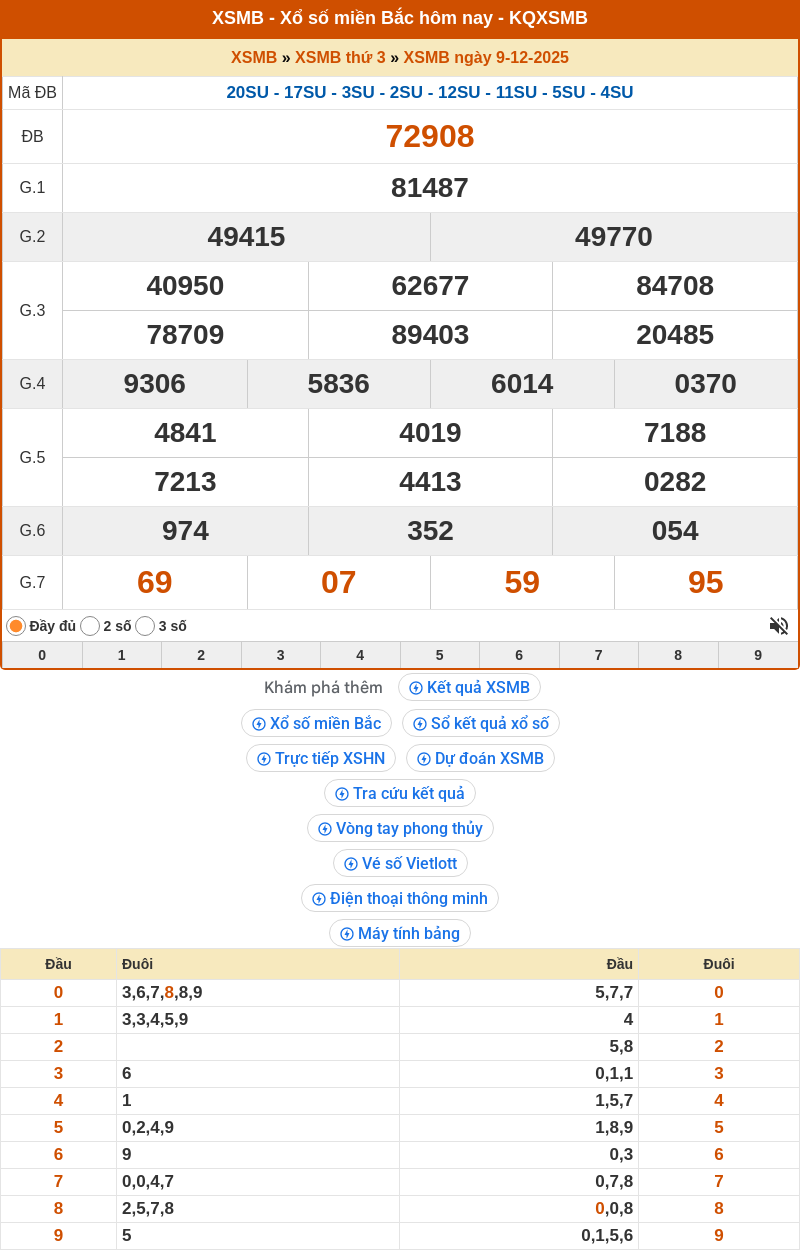 1. ✔️Xem lại kết quả XSMB ngày 09/12/2025 ngày hôm qua