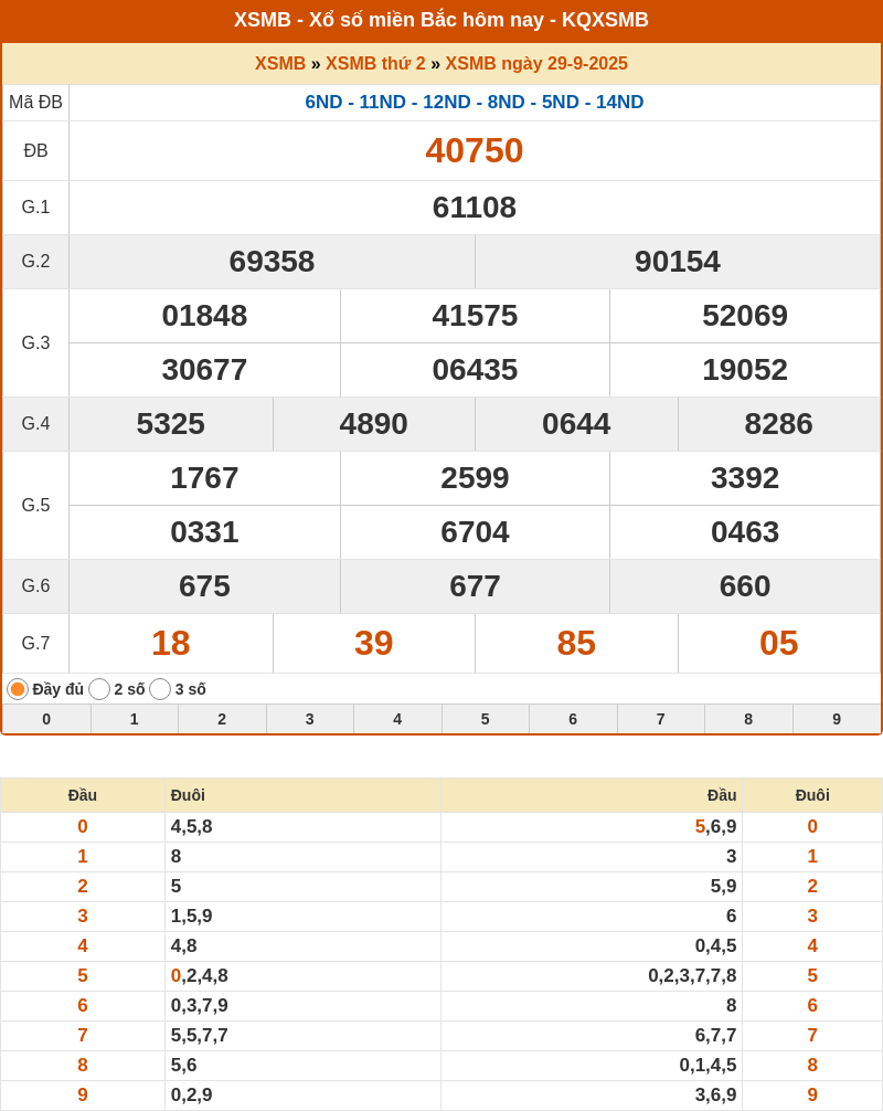 1. ✔️Nhìn lại kết quả XSMB ngày 29/09/2025 hôm qua