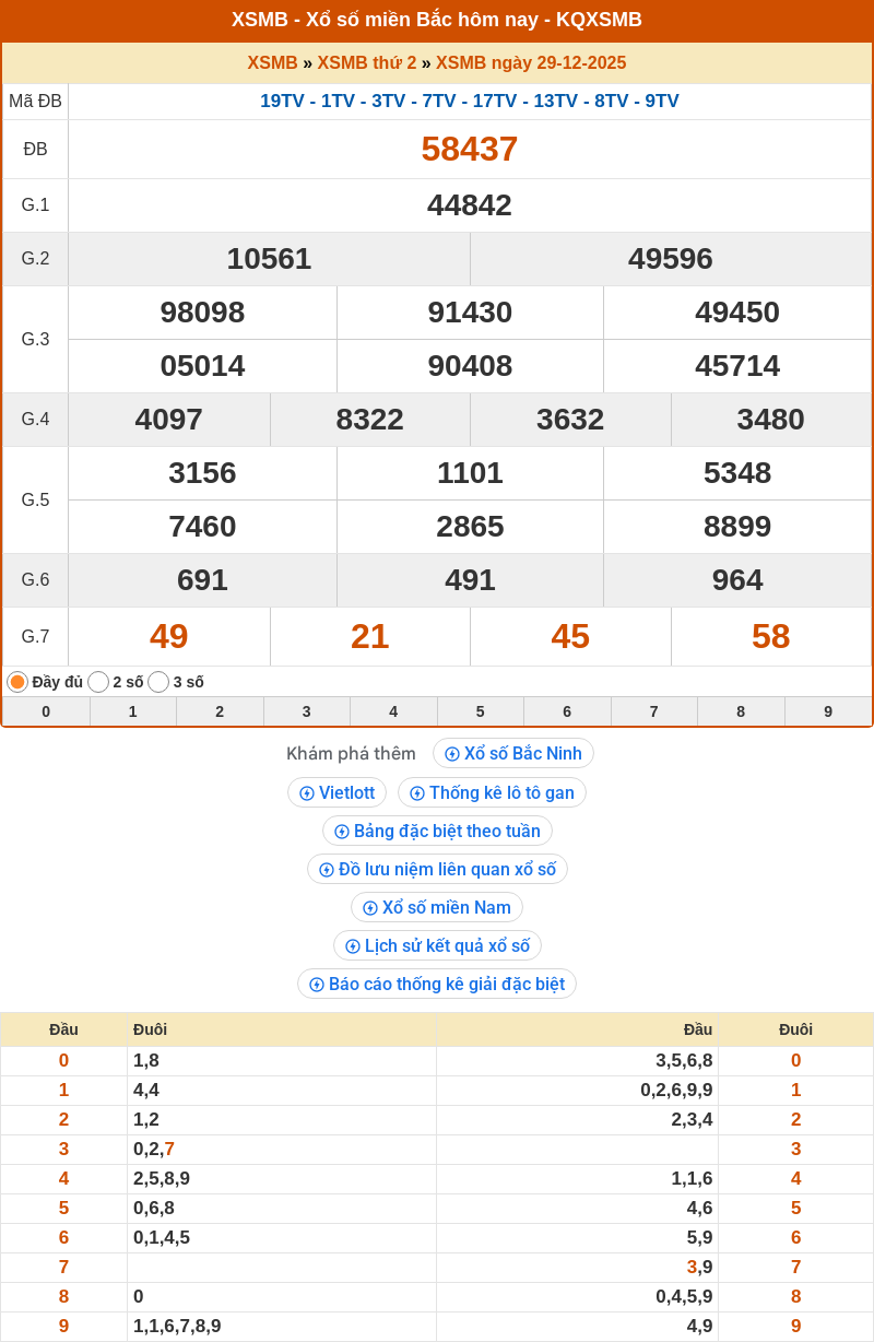 1. ✔️Nhìn lại KQXSMB ngày 29/12/2025 hôm qua